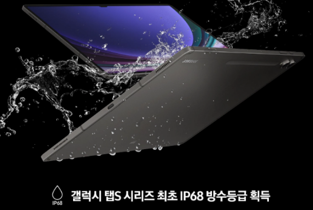 원래 이전에 액티브 모델 한정으로 방수방진을 지원하긴 했는데, 이번에는 플래그십도 방수 방진을 지원합니다. 그래서 물에 넣어도 상관없고, 물속에서는 터치는 안 되지만 S펜은 정상 작동합니다.